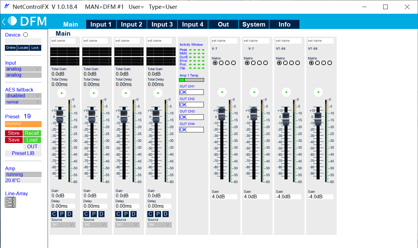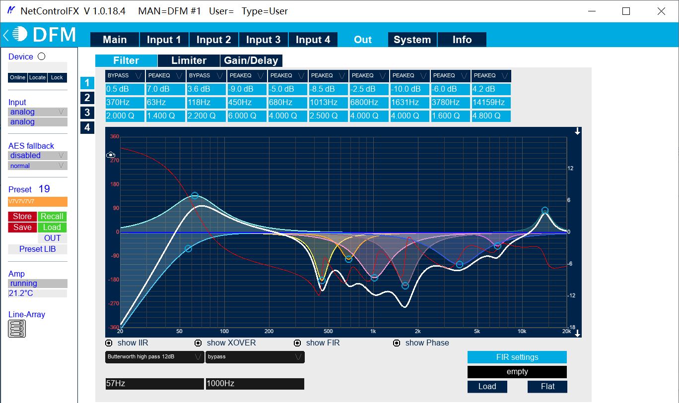 Professioneller DSP-Verstärker mit Fernsteuerung, PFC und TFT-Farb-Touchscreen